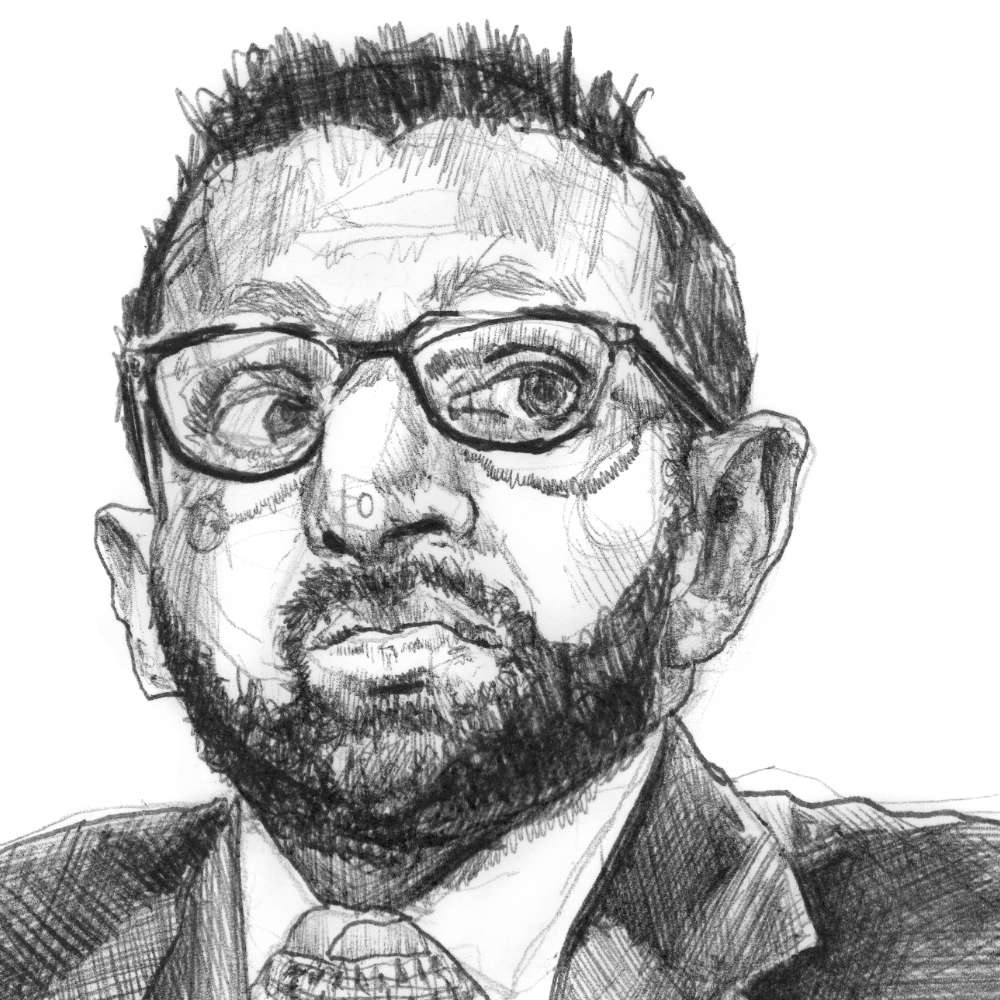 Drawn entirely by hand, this expressive artwork highlights Patel’s sharp features, bold glasses, and watchful eyes — freezing a fleeting but unforgettable reaction in black ink. It’s part of the Political Portraits Collection, a series dedicated to capturing key figures in candid, unscripted moments of political life.
