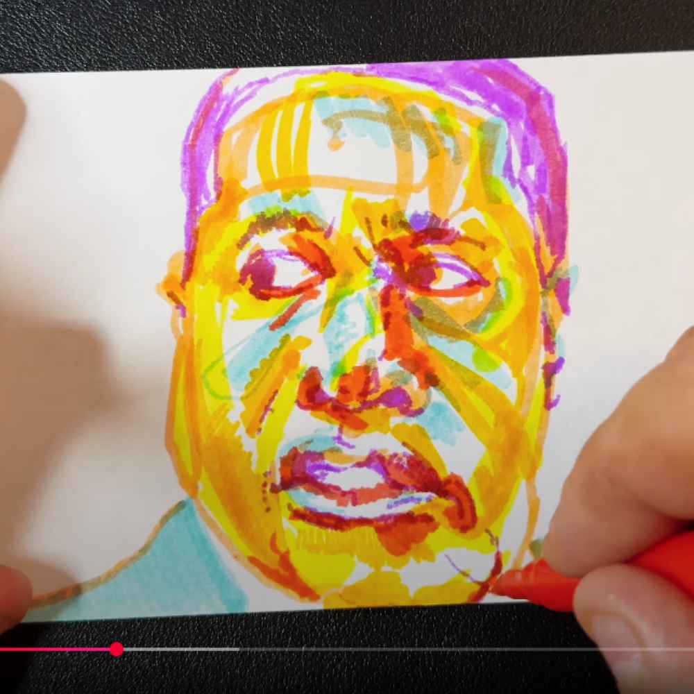 This 4x6 mixed media portrait of Larry Elder captures charisma, energy, and confidence through vibrant layers of ink, marker, and colored pencil. The expressive strokes and rich palette merge realism with artistic interpretation — a reflection of both presence and perspective.