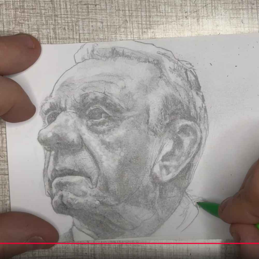 Each pencil stroke is carefully layered to build texture, tone, and humanity. The result is a piece that feels both intimate and historic — echoing the realism of traditional portraiture with the artist’s expressive touch.