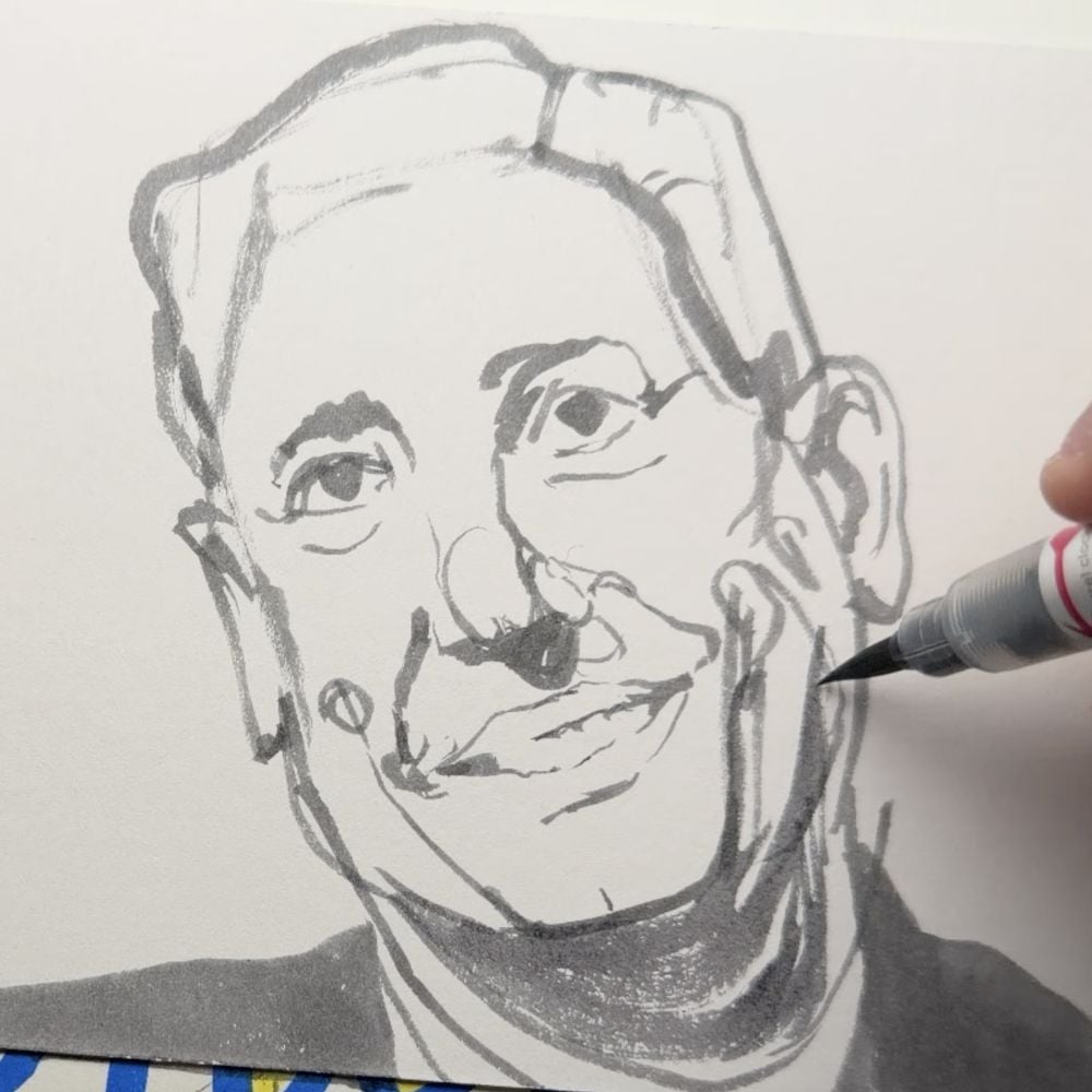 This 6×9 pen and ink portrait of David Sacks captures the modern face of influence — a confident blend of intellect, business acumen, and quiet control. Drawn in rich tonal layers with expressive crosshatching, the portrait balances precision with spontaneity — revealing both the polish of a public persona and the human spark behind it.