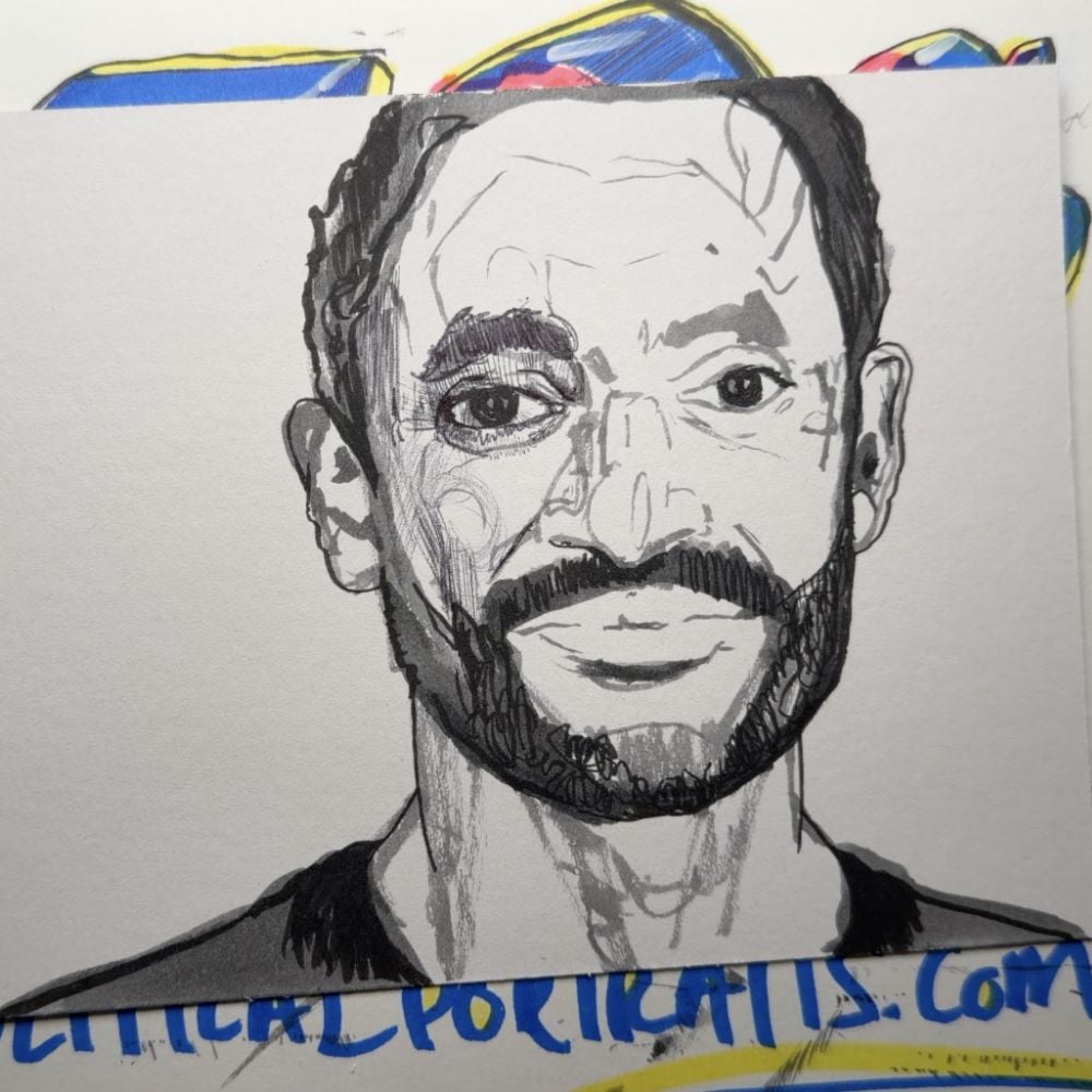 This 6×9 pen and ink portrait of Chamath Palihapitiya captures the confident intellect and quiet defiance of a figure who’s redefined influence in both technology and public discourse. Drawn in deliberate strokes of ink and tone, the piece balances sharp structure with expressive realism — revealing both calculation and candor in the same frame.