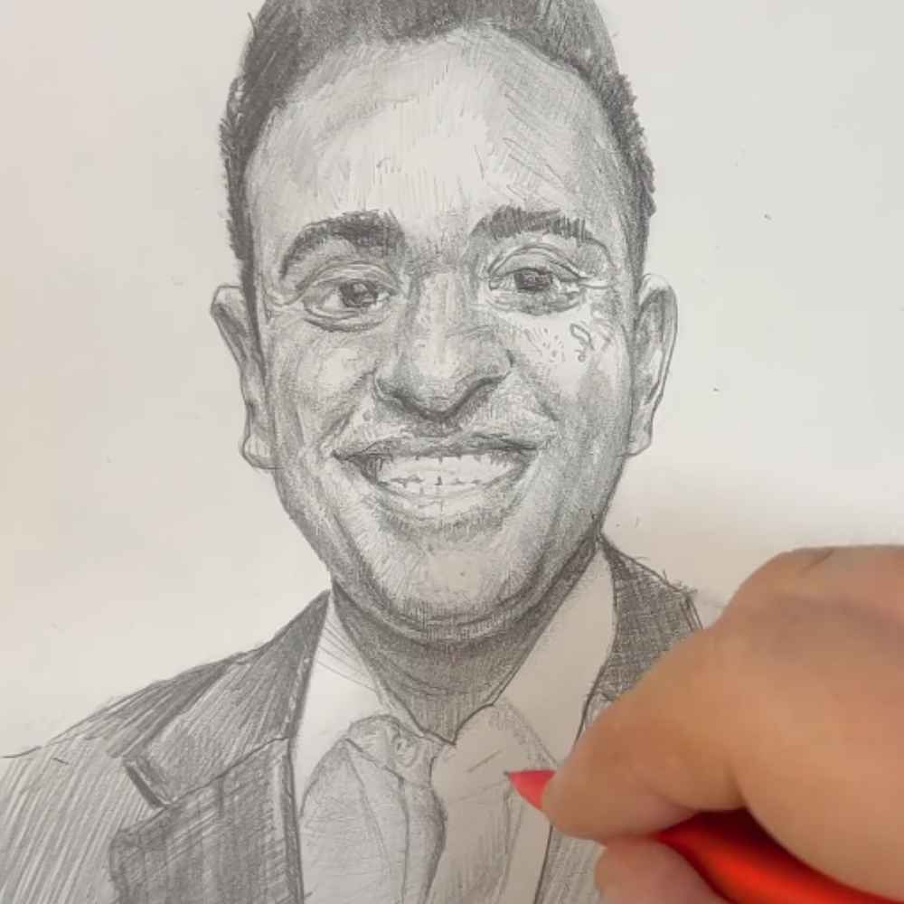 This 5x7 graphite pencil portrait of Vivek Ramaswamy blends precision and warmth to capture the spirit of modern leadership. The artist’s careful shading and expressive mark-making create a lifelike, optimistic rendering that celebrates confidence and clarity.